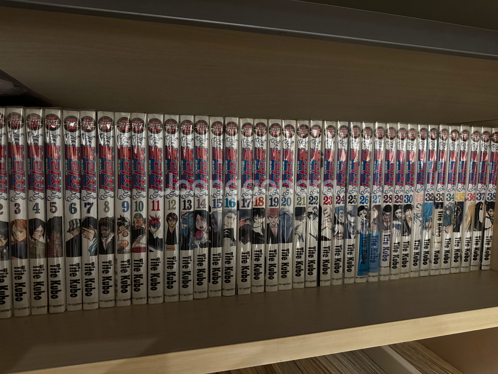 블리치 전권 판매합니다. 일부 책들의 세로 부분의 약간의 색바램을 제외하곤 사진에서 보시다싶이 전부 새책에 가까운 좋은 상태입니다. 요즘 재발매 책과 다른 초판으로 알고 있습니다. 전부 자체 비닐 포장을 따로 하였고, 바로 구매하실 시에 한국 공식 캐릭터북과 일본 공식 캐릭터북 2권을 추가로 드립니다. 원하시면 귀멸의 칼날 일본어판 3권도 드립니다. 직거래는 수성못 근처에서 가능하고, 택배 거래시에 꼼꼼히 잘 보내드리겠습니다.