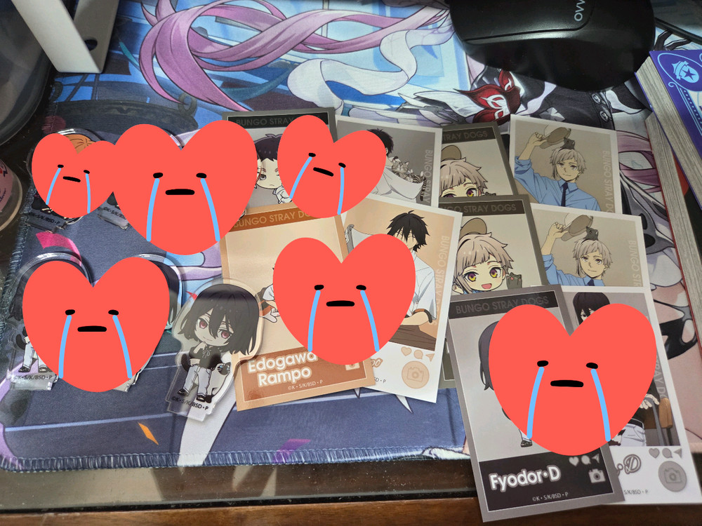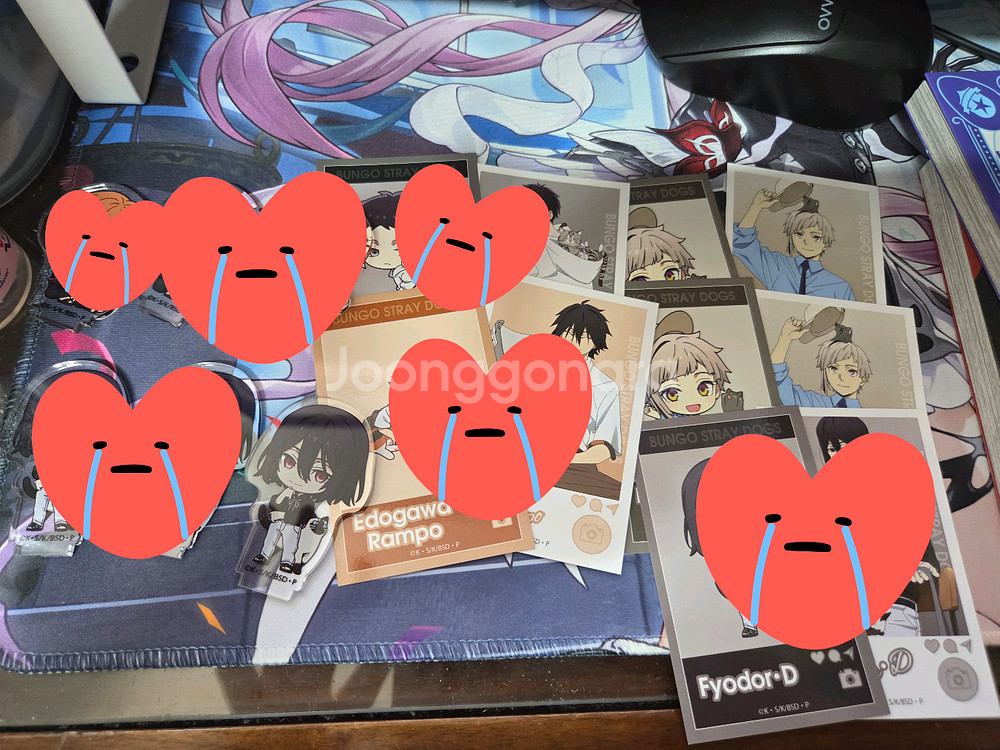 개인정보(거래정보)를 주고받는 행위는 사기에 노출될 수 있으므로 즉시 중고나라로 신고해 주세요캐릭터 확인 및 촬영을 위해 잠깐 개봉 후 재포장 했습니다! 파샤 세트(캐당 2장) = 0.6 재고 : 아츠시(2세트) 미니아크스타 = 0.9 재고 : 표도르 미니아크스타는 3번째사진(다자이) 교환 우대합니다!