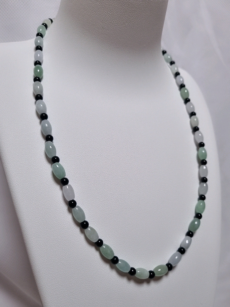 천연 버마산 옥과 블랙 오닉스 원석이 고급스럽게 조화된 목걸이입니다. 은은한 옥 색깔이 얼굴을 더욱 화사하게 만들어 줍니다. 특별한 날 포인트 주기 좋은 아이템입니다. 별도 문의 없으시면 바로 안전결제 부탁드려요! 목걸이 써지컬 스틸 길이 조절 체인 목걸이 길이 50cm 옥은 나쁜 기운을 물리치고 복을 불러온다는 벽사의 믿음이 강한 원석 입니다 블랙 오닉스는 부정적인 에너지를 차단하고 안정성과 견고함을 제공하는 '보호의 돌'로 불립니다.