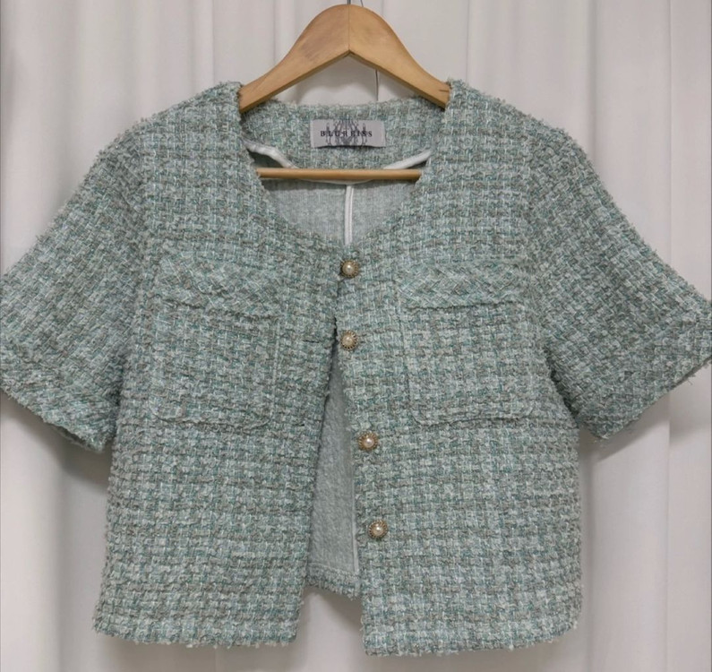 개인정보(거래정보)를 주고받는 행위는 사기에 노출될 수 있으므로 즉시 중고나라로 신고해 주세요은은한 펄사와 진주단추가 고급진 느낌을 주는 블루레이스 민트색 반팔 트위드 자켓입니다. 세련된 디자인에 입으면 핏 라인도 너무 예뻐요^^ 구매한지 얼마안됫고 1번입어서 상태도 좋습니다! ✅표기사이즈free 실측가단50 총장48정도 확인됩니다🥰