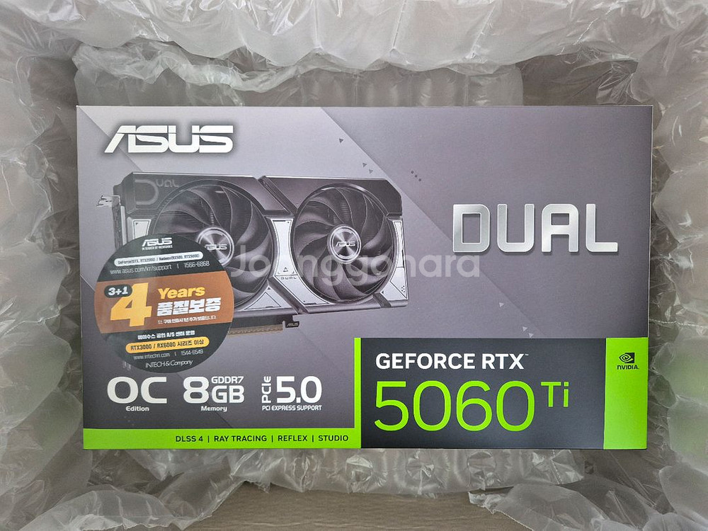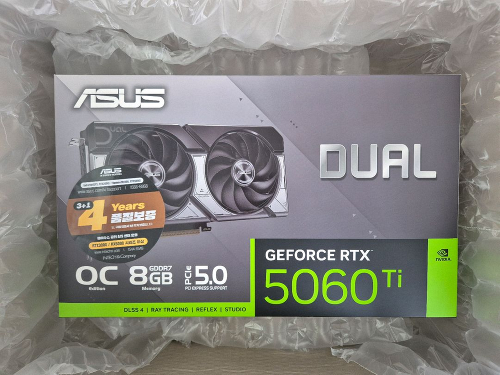 ASUS DUAL 지포스 RTX 5060 TI OC D7 8GB 팝니다. 미개봉 4월11일 구매했습니다 as 4년 연장 신청은 했습니다. 평일 직거래 충무로역이나 을지로3가역 가능합니다 (퇴근전까지)