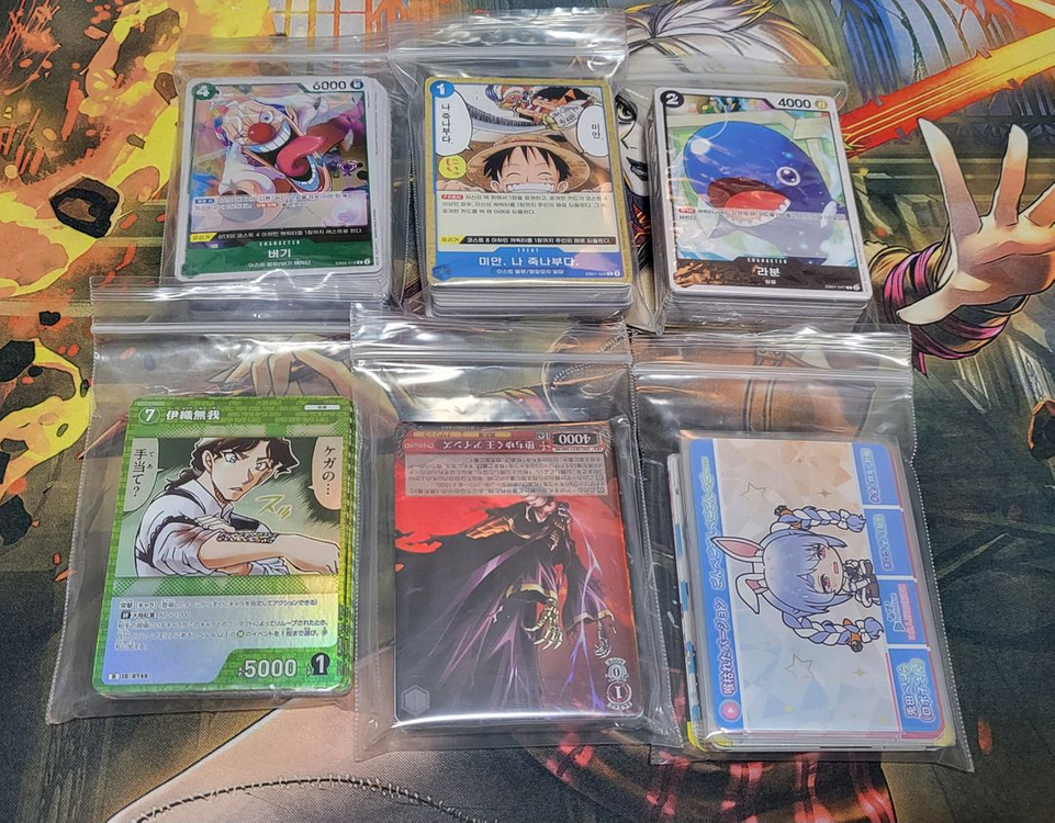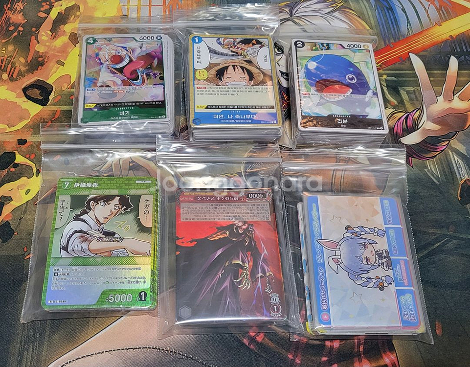 각종 tcg 카드들 판매합니다. - 원피스 tcg 130장 - 코난 tcg 25장 - 홀로라이브 25장 - 오버로드 27장 전부 박스에 보관만 하던 카드들이라 상태 아주 좋습니다! (레어도 높은 카드는 없으며 중복 다수 있습니다.) *원하시면 각 작품별로 개별 판매 가능합니다. (개별 판매시 장수 구분없이 5천원에 판매합니다) 3호선 경찰병원역 직거래 선호하며 오시기 힘드시면 택배발송도 가능합니다 *택배거래시 택배비 별도로 추가됩니다. (일반택배 4천원 / 편의점 반값택배 2천원)