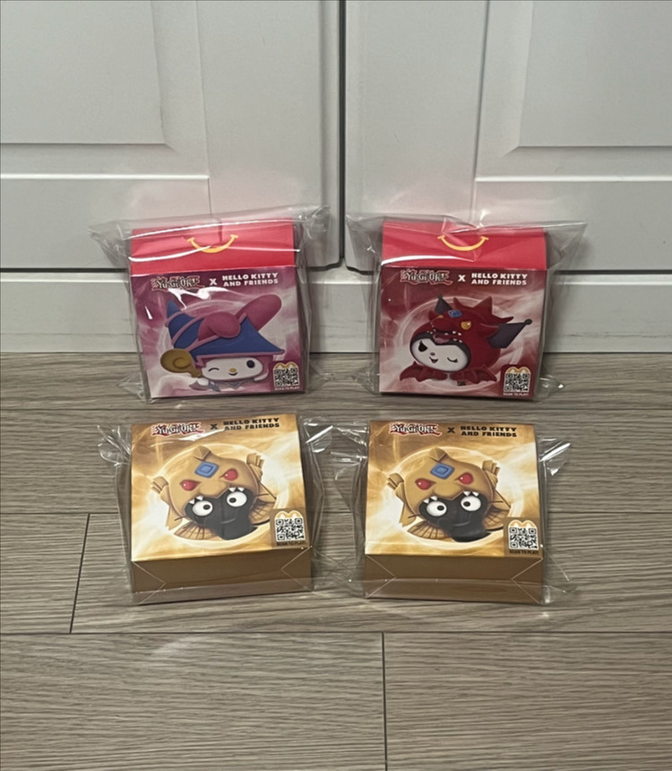 ->구매후 바로 보관만한 상품입니다. 택 그대로있고 매장에서 최대한 흠집 없는걸로 골라서 구매했지만 약간의 이염이나 흠집 또는 기스는 있을수 있어요 사진 확인후 예민하신분 피해주세요 개봉 시 불량품에 대해서 환불 또는 보상X (제조 공정 자체에서 생긴 페인팅 불량, 이염, 흠집 및 기포로 인한 환불불가, 수령후 어떠한 이유든지 교환 및 환불불가) ->흥정, 분할거래, 교환문의 안받아요 (문의주셔도 답변안해드려요) ->찔러보기 신고합니다 정확히 구매결정하신분만 문자주세요 ->교환, 직거래, 반값택배 거래 안합니다. 문의주지 마세요 ->택배 파손 및 분실 책임 안져요 최대한 안전하게 포장해드립니다. ->입금은 주문 후 바로 해주실분만 부탁드려요. 배송은 입금 확인후, 익일날 보내드립니다. (휴일 제외) 1. 맥도날드 해피밀 산리오 유희왕 콜라보 마이멜로디, 쿠로미, 초코캣*2 총 4개 일괄판매(개별판매X) 택포 17000원