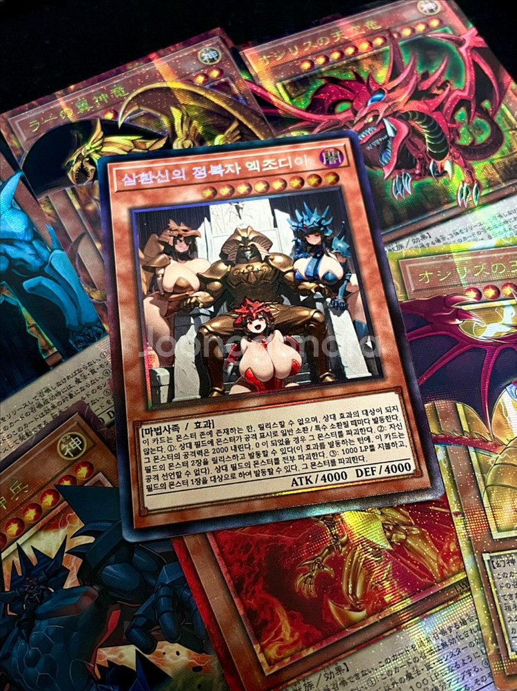 📍📍📍📍📍📍📍📍📍📍📍📍📍📍 엑조디아는 주문제작을 맡겼던 제품이며 이제 어디에서도 구할수없다고판단됩니다. 쿨거래시에만 7장모두 금요일까지만 3만원, 주말부터 다시 5만원입니다. 구매희망하시면 바로계좌보내드리겠습니다. 📍📍📍📍📍📍📍📍📍📍📍📍📍📍 엑조디아 오리카는 한글판버전이며, 퀄리티 상당히 좋습니다. 주말까지쿨거래시 삼환신 카드 6장(오시리스, 오벨리스크, 라)서비스 까지 총 7장모두 보내드립니다. 모두 코나미 정발판아닌 오리카제품이기에 꼭 참고부탁드립니다. 앨범보관용으로 구매했으며 수집종목 변경으로 판매합니다. 기타질문받지않고 쿨거래희망합니다. 삼환신서비스카드는카드퀄조금차이나지만 서비스카드개념으로보내드리겠습니다. 계좌쿨거래시에만해당가격이며 구매후 교환환불불가능하며 발송시 절대 구겨지지않게 플라스틱케이스로 잘 포장해서 보내드립니다!