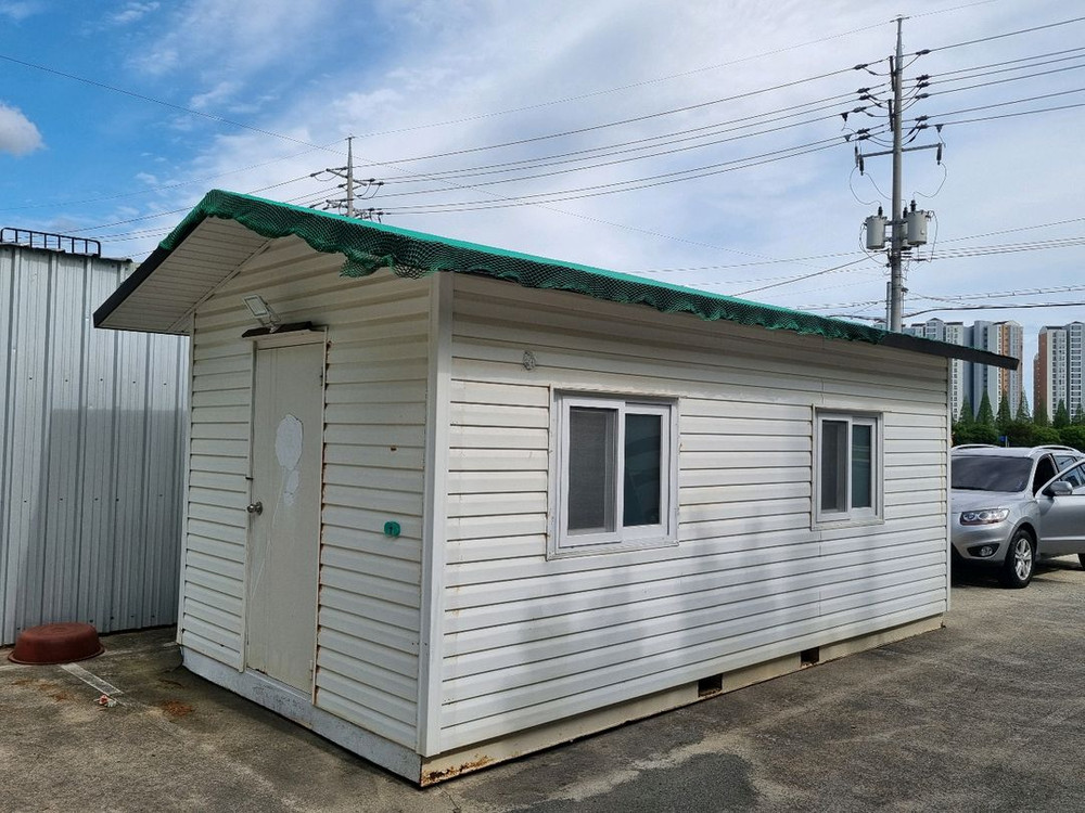 이동식 조립식 주택 판매합니다 외관은 밝은 베이지 흰색이고 내부는 상부는 2중천정에 벽체는 벽2중으로 시공 히노끼나무로 벽하부를 시공하였습니다. 바닥은 온열전기판넬시공 창문재시공, 문, 조명, 기본 배선이 갖춰져 있습니다. 외관에 약간의 사용 흔적과 얼룩이 있습니다 3×6컨테이너에 지붕은 판넬에 싱글지붕재 시공으로 컨테이너의 단점인 열기차단 외부 판넬시공에 내부입구쪽 주방 씽크대포함 내부3×4방 방에 목재히노키우드 마감에 바닥은 전기판넬난방 완료됨 창문은 새로설치함 기존 컨테이너창은 형편없어 새로제작시공 유리는 난방,단열등으로 페어유리시공함 농막,보조 방으로 사용하면 됩니다 지역은 경주 입니다 고속도로 운반 가능합니다 사진보시고 실물은 경주 문의주세요 공일공 8440 육육일사 입니다 가격은 800만원 입니다 일천만원 이상 투입했어요 배송비는 별도 입니다 외부 천정옥상에 그물은 이동시 싱글보호용으로 덮어놓은 것입니다. 자리에 고정후 벗겨내시면 됩니다