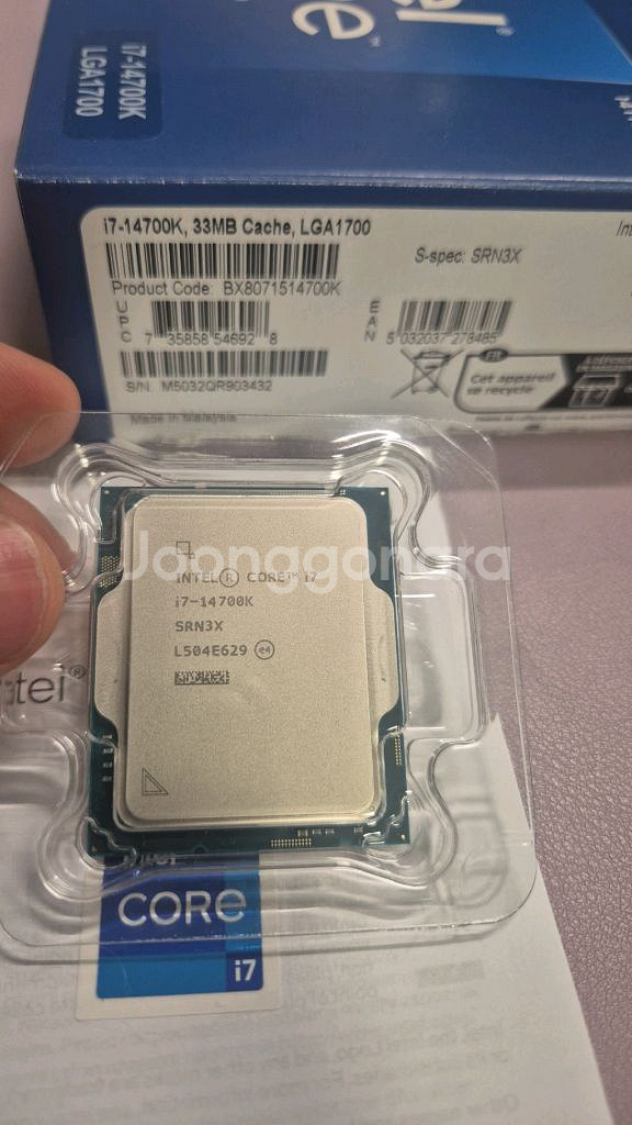 인텔 14세대 코어 i7-14700K CPU 판매해요 박스와 구성품 모두 포함되어 있어요 사진에서 보이는 것처럼 깔끔한 상태입니다 문서, 영상 작업 등 고사양 작업에 적합한 CPU입니다 1년 됐고 as기간 2년 연장되서 넉넉하게 4년 남았습니다 + 10만 하시면 b760m 보드 ddr5 ddr4 선택해서 (둘다있음 선택 가능) 같이 드립니다 사기많습니다 안전거래 안하는 유저랑은 거래하지마세요 뭐 궁금사항 없으시면 채팅없이 안전거래구매하심되구요 p.s 거래내역보시면 제법많이팔았고 한번의 불협화음없었습니다 믿고거래해주시면됩니다. @@타사이트에서거래하자는 중고나라유명한 사기수법알고있으니 채팅하지마세요