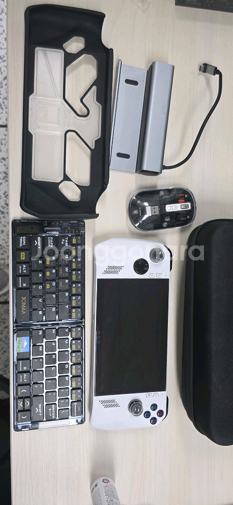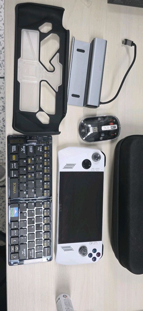 ROG Ally 2tb wd sn740으로 교체 배터리 74wh 교체 서멀구리스 재도포 완료, 블루투스 키보드 마우스,c타입 충전 및 허브 독 스텐드tpu 케이스,가방,액정 강화유리 부착 조이스틱 갈림 증상 방지 실링 씌워져있음 전원버튼 지문인식 교체 sd카드 슬롯 정상작동 정품충전기 박스 포함해서 판매합니다