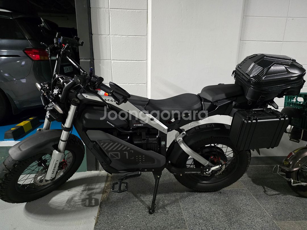 상품명 : 세그웨이 자이버 색상 : 블랙&실버 제작연도 : 2025년 구매일 : 2025년7월 적산거리 : 6,373km 구조변경 : 안장 사고유무 : 없음 *자세한 사진은 저녁에 업데이트 하겠습니다.* 튜닝 여부 : 리어탠덤 시트 사이드백 세트 안장으로 교체(온라인 판매가 579,000원+작업비용 280,000원) 블랙박스 : 30만원대 블랙박스 전/후 있음(블박에 사용해야하는 배터리 추가로 드립니다.) 사이드미러 : 있습니다. 방향 지시등 : 있습니다. 추가 구성품 : 정품안장 , 외부충전포트(직구 34,900) 세그웨이 정품 충전기(직구 149,000원) 배터리 : 48v 750W 30AH 2개 모델로 구매 판매지역 : 서울 마포구 출퇴근용으로 만족하며 사용하던 모델입니다. 이전에 세임바이크 컨티넨탈을 4년간 타다가 넘어온 제품으로, 성능과 주행감이 좋아 선택했었습니다. 개인 사정으로 판매하게 되어 중고나라에 올립니다. 일반 전기자전거와는 다르게 차체 무게감과 안정감이 확실히 다른 모델입니다. 프레임도 오토바이 타입이라 직접 보시면 체감하실 수 있습니다. 모터 출력이 좋아 언덕 주행도 부담 없이 가능하며, 듀얼 배터리 사용으로 주행거리 및 활용성이 좋은 편입니다. 배터리는 동시 충전이 가능하고, 야외 충전을 위한 포트도 추가로 구매해두었습니다. 최근 정품 고속 충전기를 별도로 구매하여 기존 충전기보다 빠른 충전이 가능합니다. 시승 가능하니 편하게 연락 주시면 안내드리겠습니다. 감사합니다. 마지막으로 브레이크 페드 교체를 해햐하는데 교체비용을 뺀 금액이라고 봐주시면 됩니다. 공인비+양쪽 교체이면 8만원정도 입니다.
