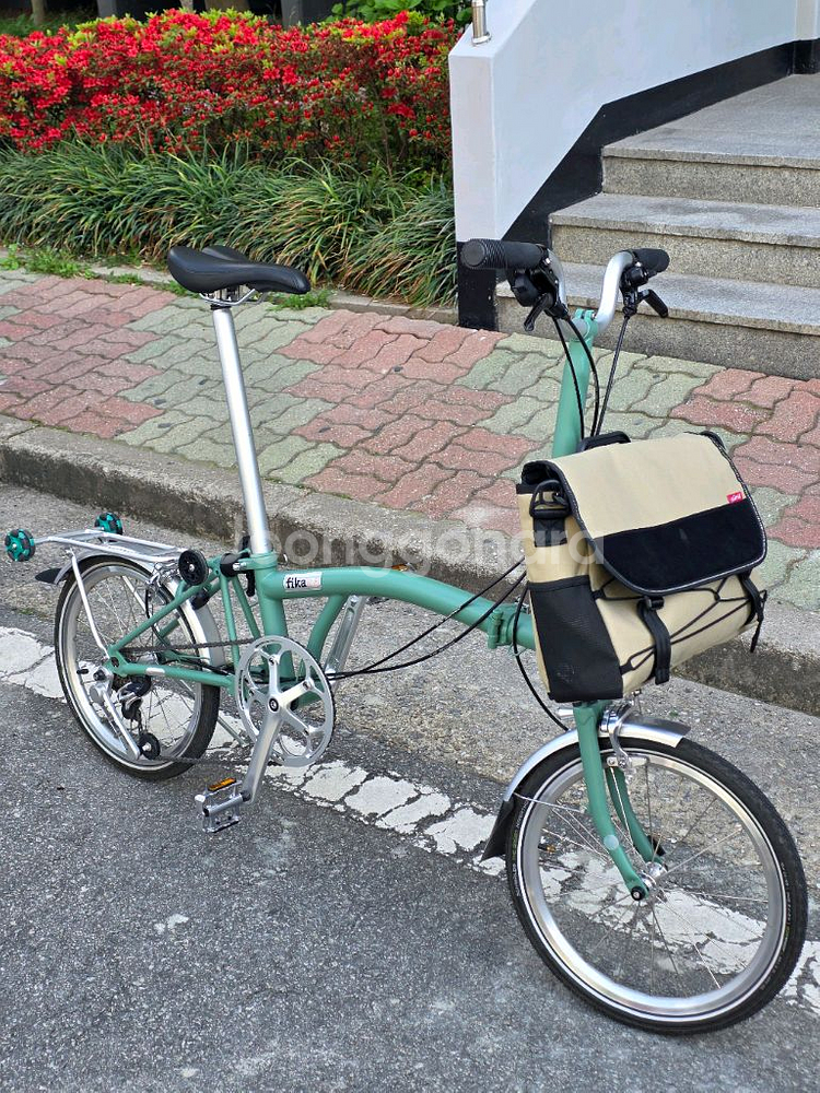 *광주 첨단 직거래 가능합니다. 브롬톤 스타일의 접이식 자전거이고, 올해 초 구매 후 출퇴근용으로만 사용해서 상태 아주 좋습니다. 주행거리 300km 미만, 타이어 솜털도 남아있을 정도예요. * 4130 크로몰리 프레임 * H&H 싱글 레버로 가볍고 편한 조작 * DCCH 고성능 구동계 * 슈발베 그린 마라톤 타이어 * 리어랙, 머드가드, 탈부착 페달 기본 구성 추가 장착 * 미드스탑 * Mr.Tiparts 킥스탠드 * 옴니휠 * 힌지 스프링 폴딩 편의성도 좋아서 출퇴근용 / 대중교통 연계 / 접이식 자전거 입문용으로 추천드립니다. 민트그린 컬러 + 캐리어블럭 장착 가능한 가방 포함 펌프, 육각렌치 세트 포함 ※ 전조등, 후미등, 리플렉터판 등 일부 악세사리 제외 브롬톤 스타일 자전거 고민하셨던 분들께 좋은 선택일 거예요. 관심 있으시면 편하게 채팅 주세요!