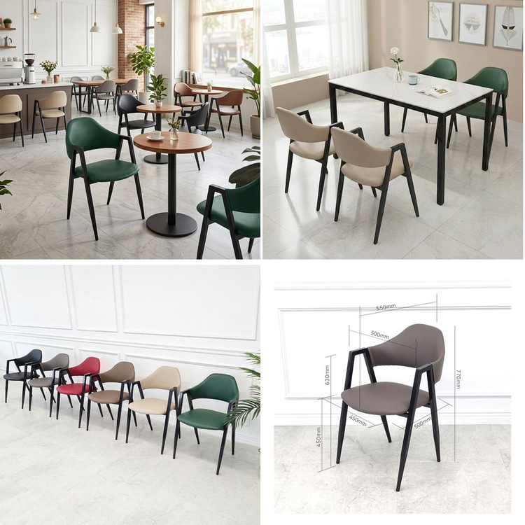 경기도 김포시에 위치하고 있는, [의자, 식탁, 테이블] 등 가구 직수입 업체 입니다. 편의를 위하여 직접 보시고 구매 가능한 쇼룸도 있으니 편하게 문의주세요~ 가구 직수입 후, 중간 유통단계 없이 직접 판매로, 온라인 최저가 보다 저렴하게 드립니다 010 6801 3123 으로 연락 주셔도 됩니다! 배송 운임은 착불 입니다! 대부분 미조립 박스완포장 되어 있어, 한차에 대량으로 합배송 가능합니다. 배송비는 거리에 따라 다르므로, 제품 수량과 위치 알려주시면 확인해 드립니다. 또는, 직접 오셔서 픽업도 가능하며, 식탁이나 의자 소량 구매시엔, 미조립 박스완포장 되어 있어서, SUV에 싣고 가실 수도 있습니다. 사진 순서대로, 금액 작성되어 있습니다. ( 예 : (8)번이 첫번째 사진 입니다 ) (8) 팔걸이 카페의자 - 무광 PU가죽형. 개당 27,000원 - 베이지, 브라운, 그레이, 블랙, 레드, 딥그린. 선택가능 - 2개 한박스 포장 (9) 원목 팔걸이 카페의자 - 무광 PU가죽형. 개당 29,000원 - 베이지, 브라운, 그레이, 블랙, 레드, 딥그린. 선택가능 - 2개 한박스 포장 (10) 원목팔걸이 카페의자, 유광 PU가죽형. 개당 27,000원 - 블랙, 카키, 진밤. 선택가능 - 2개 한박스 포장 (11) 원목느낌 (철재프레임) 팔걸이 의자. 개당 36,000원 - 철재프레임 + PU가죽 (패브릭 질감을 살린 고급 PU) - 핑크, 민트, 연그레이, 진그레이. 선택가능 - 2개 한박스 포장