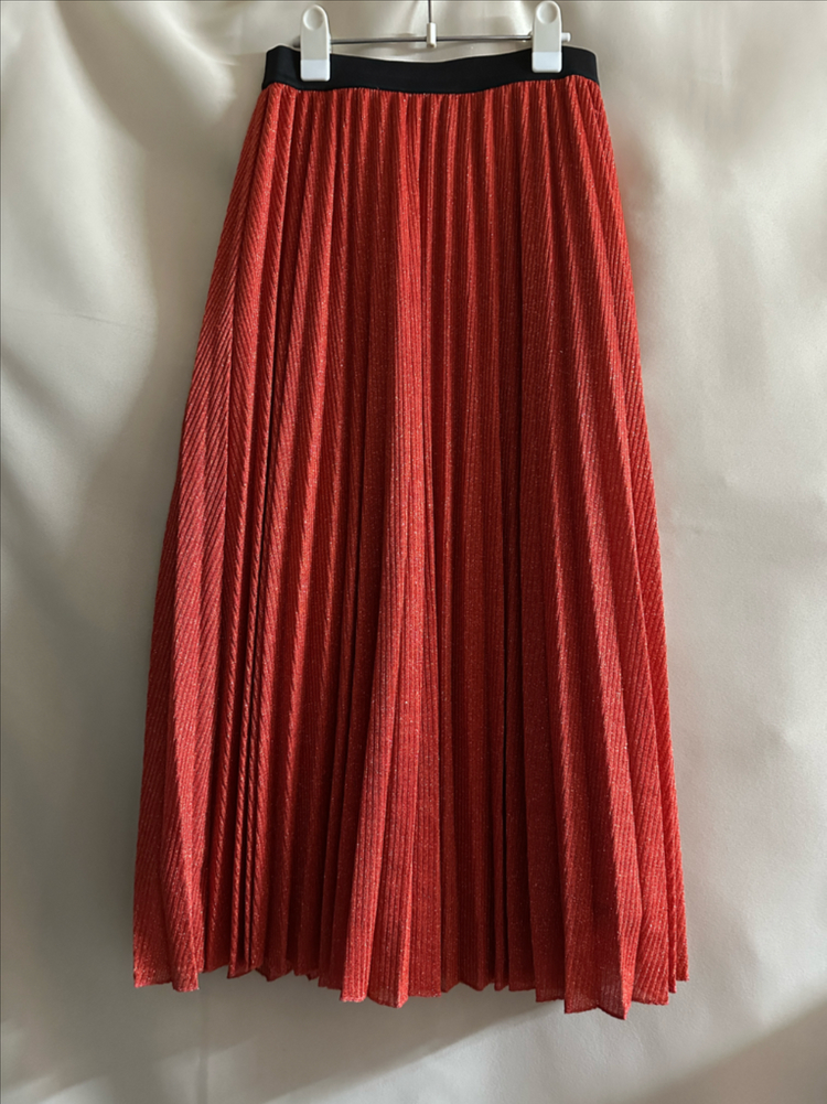 봄 여름 가을 입기 좋은 Maje 마쥬 플리츠 스커트 사이즈 1 펄이 은은하게 들어가 있고 튀지 않는 고급스러운 다홍색, 주황색 계열의 스커트 입니다. 안에 속치도 있어요. 겨울 빼고 다 입을 수 있어서 실용성 굿👍 길이 약68cm(밴드부터 쟀고 약간의 오차 있을 수 있어요) 상태 좋아요👍 중고거래 특성상 반품 불가하니 신중한 거래 부탁드립니다!😁