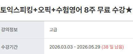 개인정보(거래정보)를 주고받는 행위는 사기에 노출될 수 있으므로 즉시 중고나라로 신고해 주세요YBM 토익스피킹, 오픽 인강 필요하신 분! 2026년 5월 29일까지 수강 가능합니다.
