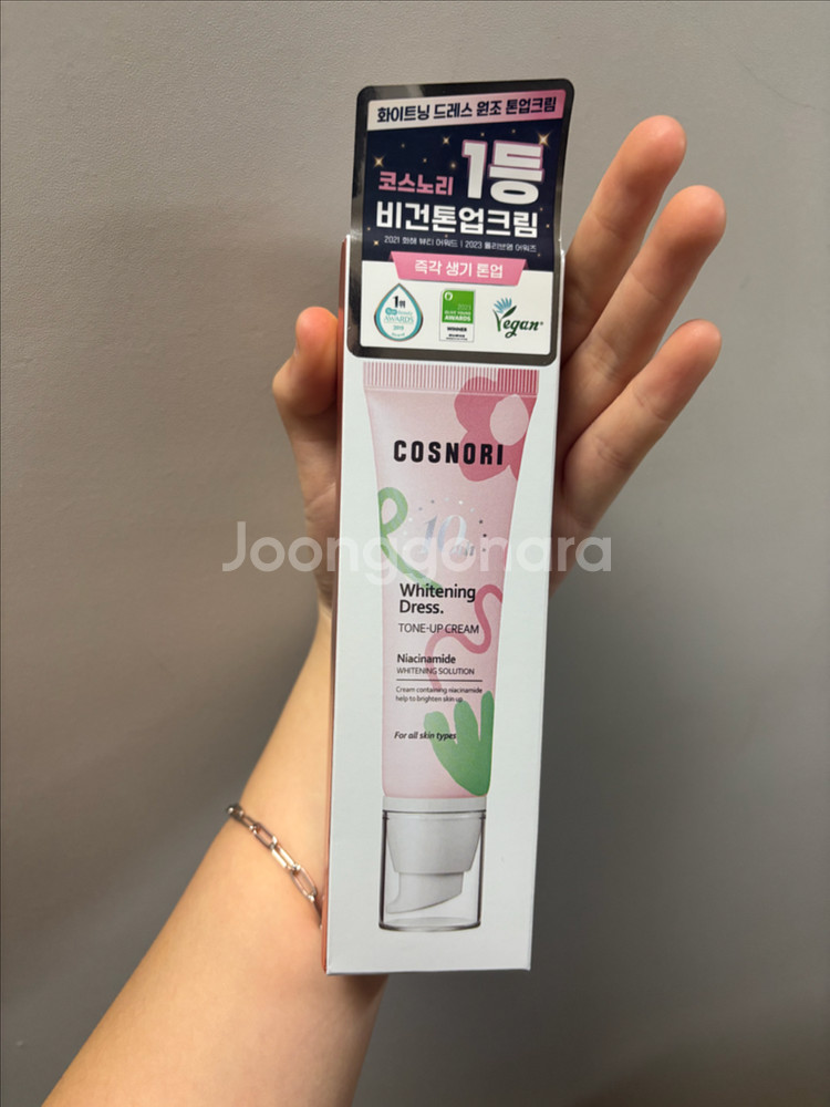 개인정보(거래정보)를 주고받는 행위는 사기에 노출될 수 있으므로 즉시 중고나라로 신고해 주세요미개봉 코스노리 톤업크림입니다. 화이트닝 효과가 있는 제품으로, 즉각적인 톤업 효과를 줍니다. 비건 인증까지 받은 제품이니 안심하고 사용하세요!