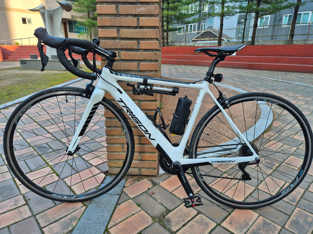 트리곤의 베스트셀러 모델, 다크니스 RSL 105 판매합니다. 풀카본 프레임이라 가볍고 반응성이 좋아 로드 입문용이나 기변용으로 최고입니다. 빠른 판매를 위해 가격 낮췄습니다. [상세 스펙] - 사이즈: 49 (권장 신장: 160cm 중반 ~ 170cm 초반) - 프레임: 경량 풀카본 (가볍고 탄성이 좋아 장거리 라이딩에 최적) - 구동계: 시마노 105 22단 (입문~중급자용으로 가장 선호되는 등급) - 상태: 실내에서 관리했고, 사고나 낙차 전혀 없으며, 주행에 따른 생활 기스 정도만 있는 준수한 상태입니다. [이 자전거의 장점] - 황금 사이즈: 중고 시장에서 구하기 힘든 49사이즈입니다. - 풀카본 가성비: 알루미늄 자전거 신품 가격으로 상급 카본 프레임의 부드러운 승차감을 느끼실 수 있습니다. - 최근 점검 마쳤으며, 기어 변속 및 브레이크 작동 이상 없습니다. - 안장(스텔스 프로), 페달(시마노 클릿) 별도로 설치했고, 그립 교체했습니다. - 물통 케이지, 펌프, 공구통, 여분 튜브, 라이트 등 구성품도 함께 드립니다 세차는 한번하면 좋을것 같습니다