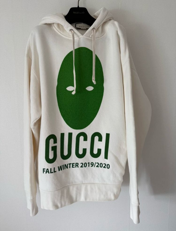 구찌 Fall Winter 2019/2020 후드티입니다 아이보리 색상에 앞면에는 녹색 마스크 프린팅이 있고, 뒷면에는 텍스트 프린팅이 있습니다 Made in Italy 제품이며, 면 재질입니다 국내 매장 구입 (국문텍 스티커 살짝 떨어짐)-사진 참조 사이즈가 커서 한번 입고 보관중 상태 좋아요(오염 이염 변색 하자 없어요) 가슴단면 65센티 총길이 70센티정도 강남 서초 직거래 가능 반품 환불 불가