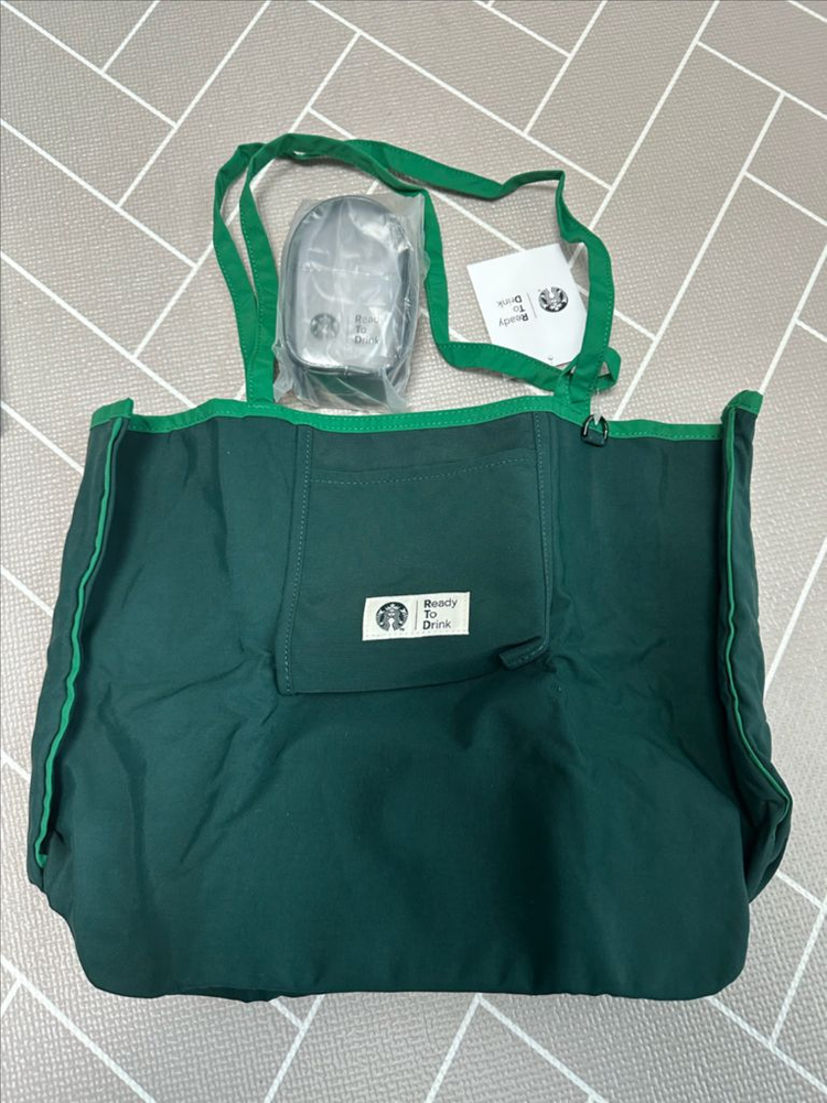 스타벅스 모멘텀 에코백과 투명 파우치 세트예요. 새상품입니다. 사진에서 보이는 것처럼 깔끔하게 보관되어 있어요. 사진찍느라 열어보고 파우치비닐은 뜯지도 않았어요. 구성품이랑 박스 다 있어요. 안에 자석단추로 가방이 벌어지지 않게 잠글수 있고 내부 포켓이 있어서 휴대폰이랑 텀블러 같은거 넣을수 있어요.