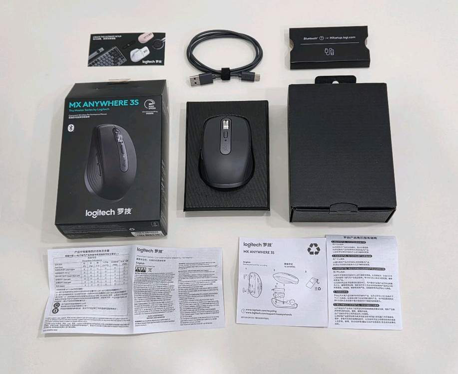 안녕하세요! 로지텍 휴대용 무선 마우스 MX Anywhere 3S 그라파이트 색상 판매합니다. 사진에서 보실 수 있듯 기스나 찍힘 등 흠집 전혀 없이 아주 깨끗하게 사용했습니다. 마우스 본체뿐만 아니라 박스, 미사용 충전 케이블, 설명서까지 처음 구매했을 때 들어있던 구성품들 하나도 빠짐없이 전부 그대로 보관 중입니다. (전용 소프트웨어에 완벽하게 인식되고 페어링되는 부분도 사진으로 남겨두었습니다.) 조용하고 부드러운 무소음 클릭에, 기기 3대까지 전환 가능한 이지스위치 기능이 있어서 휴대용이나 사무용 마우스로 쓰기 아주 좋습니다. 택배 거래도 가능하며, 중고기기 거래 특성상 교환 및 환불은 어려운 점 양해 부탁드립니다. 매너 거래 원합니다. 편하게 채팅 주세요!