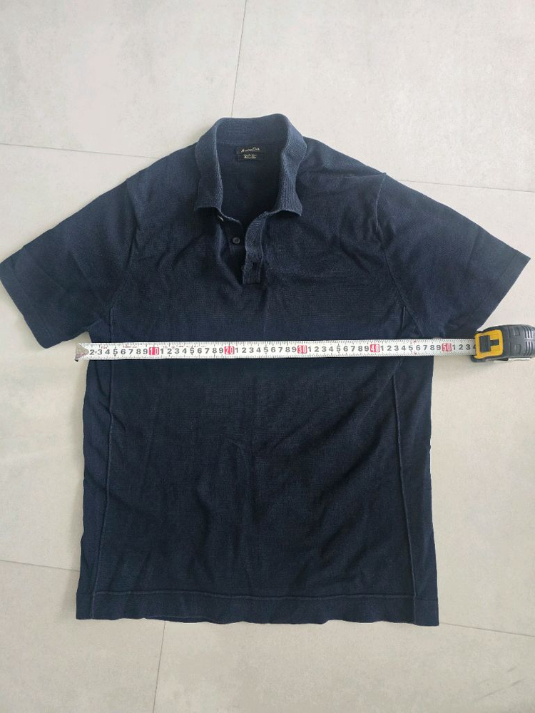 깔끔한 네이비 색상의 마시모두띠 카라티에요 사진에 보이는 것처럼 L 사이즈이며, 편안하게 착용하기 좋아요 데일리룩으로 활용하기 좋은 아이템이랍니다 어떤 하의와도 잘 어울려서 코디하기 쉬워요. 일반세탁 및 컨디션상태 적용하고 판매가 올립니다. 바로구매, 구매자 택배비 부담관련 생각해서 판매가 적용.