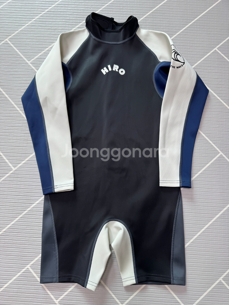 히로 범고래 스윔수트 구상 130사이즈입니다 접어서 보관해서 그런건지 배 부분에 접힌자국인지 얼룩인지가 약간 보이네요 이것외에는 새상품 컨디션입니다 비닐과 택은 제거해서 없습니다