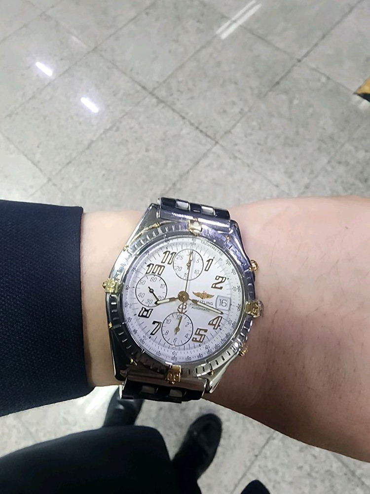 모델 번호: B13050.1 시리즈: 크로노맷 비테세(Chronomat Vitesse) 특징: * 스테인리스 스틸 케이스에 골드 라이더 탭과 푸셔, 크라운이 적용된 콤비(Two-tone) 모델입니다. 다이얼의 숫자가 비스듬하게 누워 있는 '이탤릭체' 아라비아 인덱스가 특징인 Vitesse(비테세) 버전으로 구하기 힘든 모델입니다. 용두는 도금이 필요하며, 베젤은 18k 골드입니다. 현재 일오차 4초 정도입니다. 양품 오차 범위(5초이내)에 들어 있습니다. 금주까지 판매 및 교환이 안될 경우 제가 소장하겠습니다. ^^ 보증서는 없으며, 정품아닐 시 200% 환불해 드리겠습니다. 박스는 있습니다. 교환문의 부담갖지 말고 많이 주세요 ^^