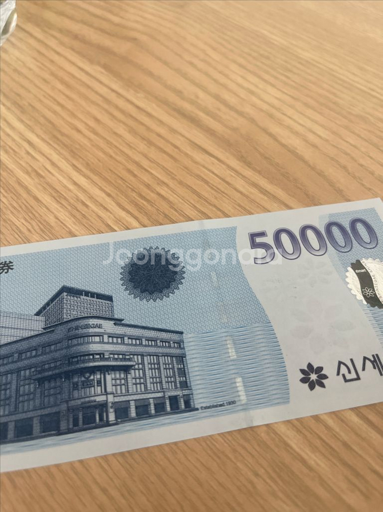 개인정보(거래정보)를 주고받는 행위는 사기에 노출될 수 있으므로 즉시 중고나라로 신고해 주세요백화점에서 사용 가능한 5만원 상품권이에요. 깨끗한 상태로 보관되어 있어서 선물용으로도 좋을 것 같아요!