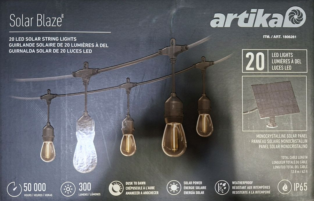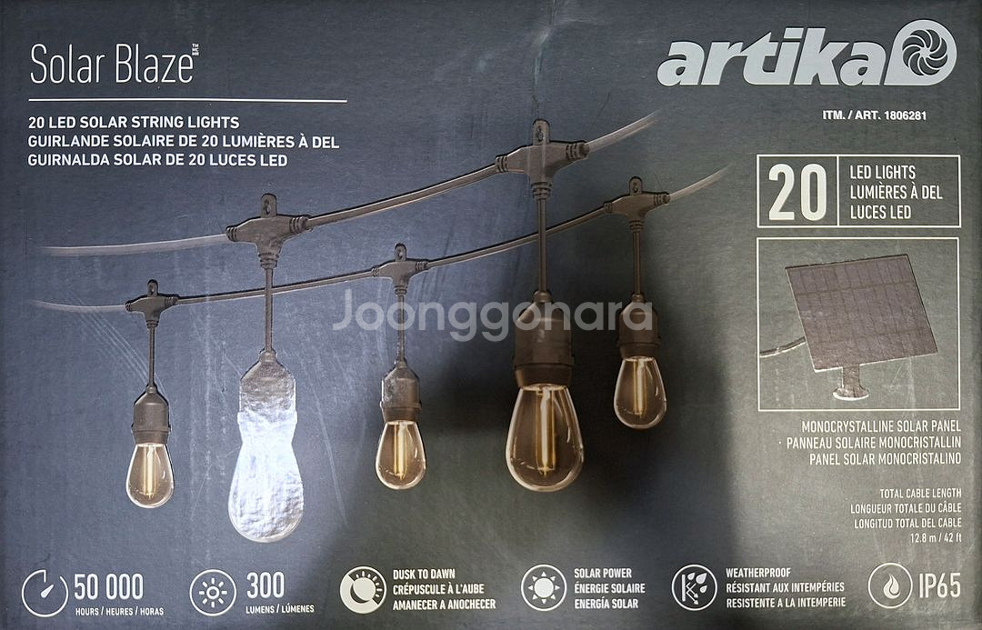 코스트코에서 판매하는 "ARTIKA LED 솔라 라이트 태양광 패널 전구"입니다. 단순개봉 상품으로 미사용 제품이나, 포장박스가 개봉되어 있는점 참고부탁드립니다. 제품 상세 사진과 스펙, 사진 참고부탁드립니다. # 품명 ARTIKA LED 솔라 라이트 태양광 패널 전구 # 제품특징 및 사양 -전선 길이: 12.8M -전구 개수: 20개 -태양광 패널로 전력을 공급하여 별도의 전력원이 필요 하지 않음 택배 가능 남양주 별내 직거래 가능