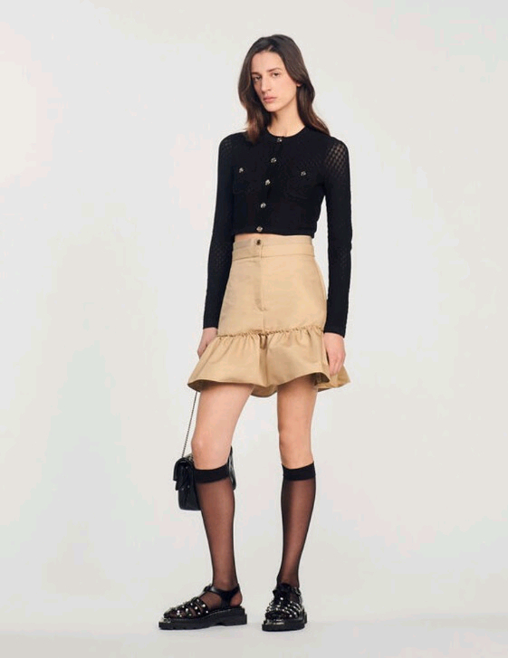 개인정보(거래정보)를 주고받는 행위는 사기에 노출될 수 있으므로 즉시 중고나라로 신고해 주세요 세련된 디자인의 산드로 SANDRO 포인텔 니트 가디건 소재 비스코스 53, 폴리아미드 44, 엘라스테인 3% 택 사이즈 1로 실측 가슴 반품 41, 기장 43cm