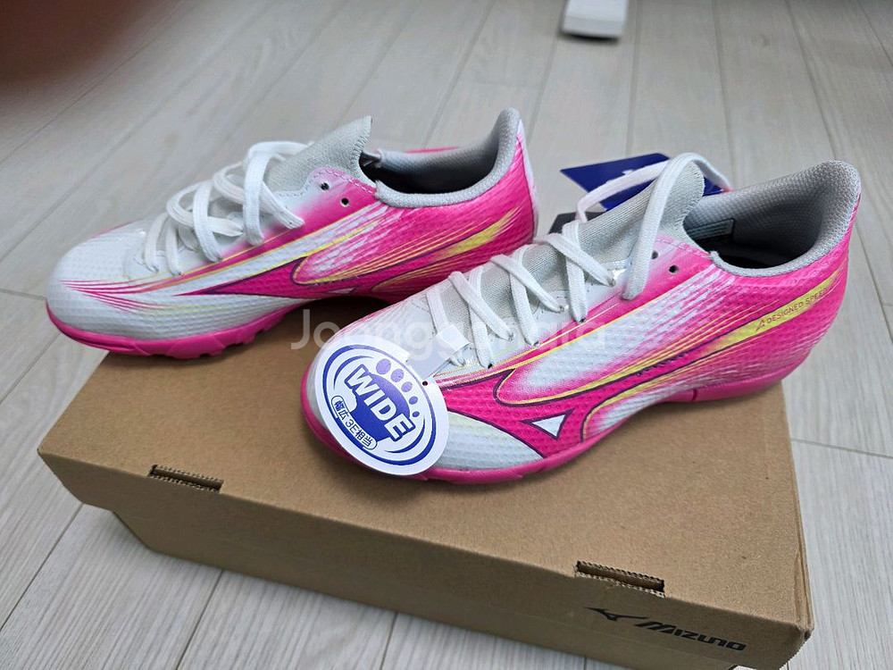 새 상품 미즈노 알파3 셀렉트 주니어 AS 유소년 축구화 210 사이즈 판매해요. 터프화라 인조잔디용또 훈련용으로 신기 좋은 축구화에요. 핑크 색상에 와이드 모델이라 발볼 넓은 아이들도 편하게 신을 수 있어요 일본에서 구매해서 한번도 사용하지 않는 박스 포함한 새제품입니다 평택 고덕동과 저녁시간 강남역 인근 직거래 가능합니다. 직거래는 3천원 더 빼드릴게요.