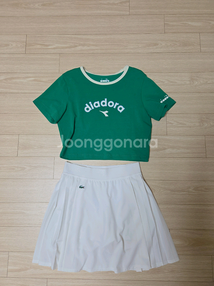 라코스테 스커트+디아도라 크롭티 55사이즈-택포 5만원 스커트 34사이즈(정가169,000원) 크롭티 85사이즈(정가59,000원) 셋트로만 판매 화이트 스커트 얼룩 하나없는 상태 최상 그린 크롭티랑 셋트로 입으면 예뻐요 티셔츠 너무 짧지않고 셋트로 딱 예쁘게 입을 수 있음 에눌,반품문의 답변 안해요 구매의사 있으시면 연락 주세요