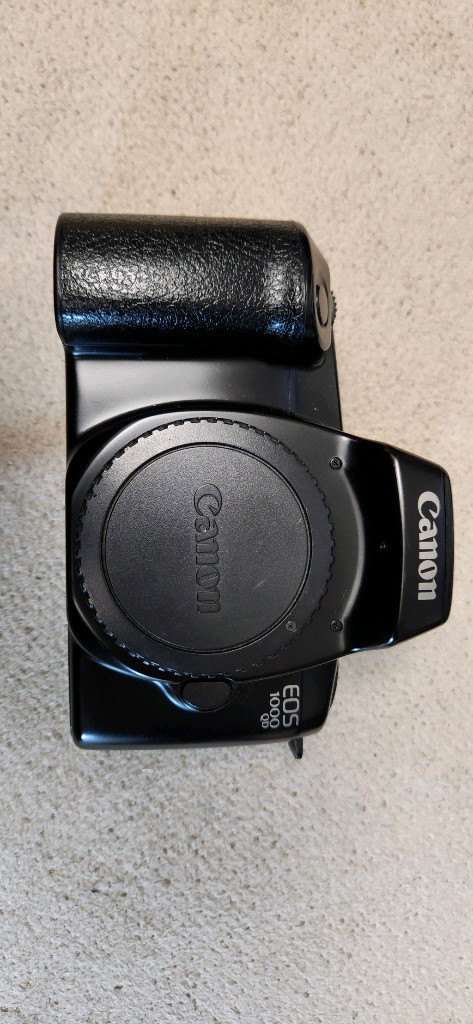 캐논 필름 SLR EOS 1000qd 팝니다. 캐논의 입문형 필름 카메라 입니다. 가볍고 내장플래시 기능 및 전기능 정상작동 합니다. 2CR5 리튬전지 사용하며 후면 시계용 수은전지는 새거로 교체해두었습니다. 리튬전자는 구입해서 사용하심 됩니다. 캐논의 DSLR 렌즈와 플래시 모든 기종과 100%호환 됩니다. 부담없이 필름 시작하실 분들께 추천드립니다 서울 직거래, 택배, 안전거래 모두 가능합니다