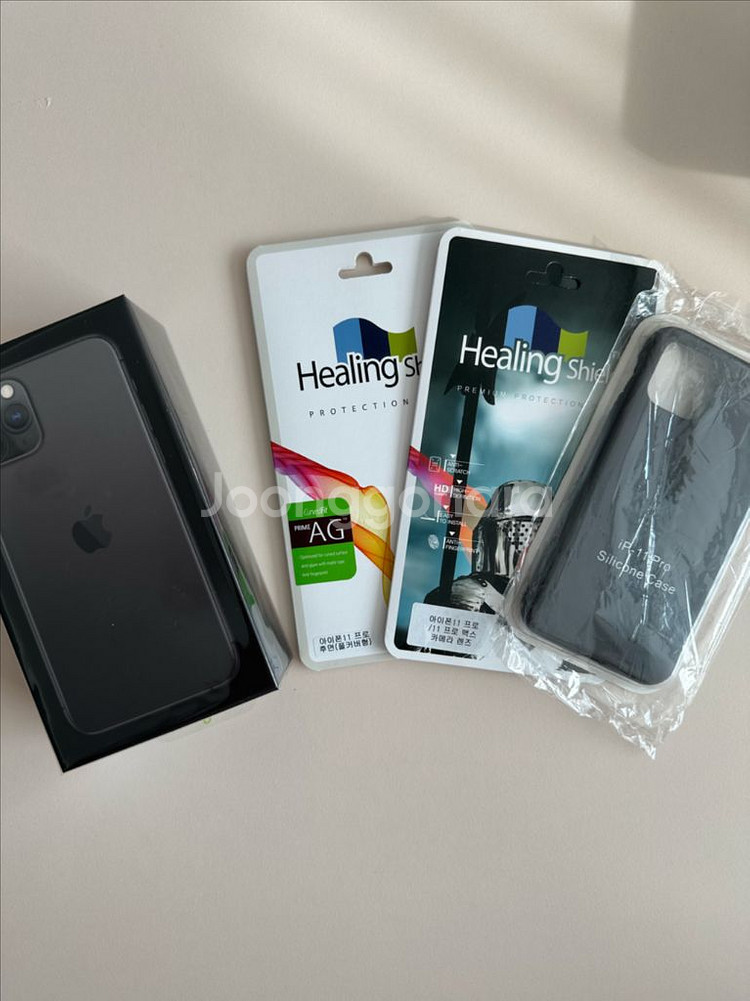 제품명: 아이폰 11 Pro 미국판 카메라 무음 용량: 512GB 배터리: 76% iOS: 17.6.1 수리 이력: x 상처 및 생활스크래치: x 집전화기로 사용했습니다. 그마저도 액정, 후면 및 사이드, 카메라 보호필름에 케이스까지 사용해서 생활 스크래치 조차 없습니다. (판매를 위해 액정 제외 모두 제거) 케이블 충전 부분도 스크래치 없습니다. 모든 기능 정상 작동 박스, 힐링쉴드 후면 보호필름 1매, 카메라 보호필름 1매, 비정품 애플로고 실리콘 케이스 증정