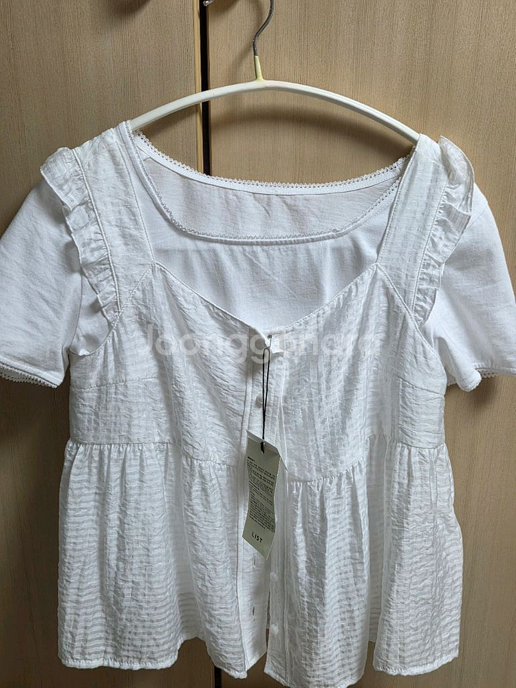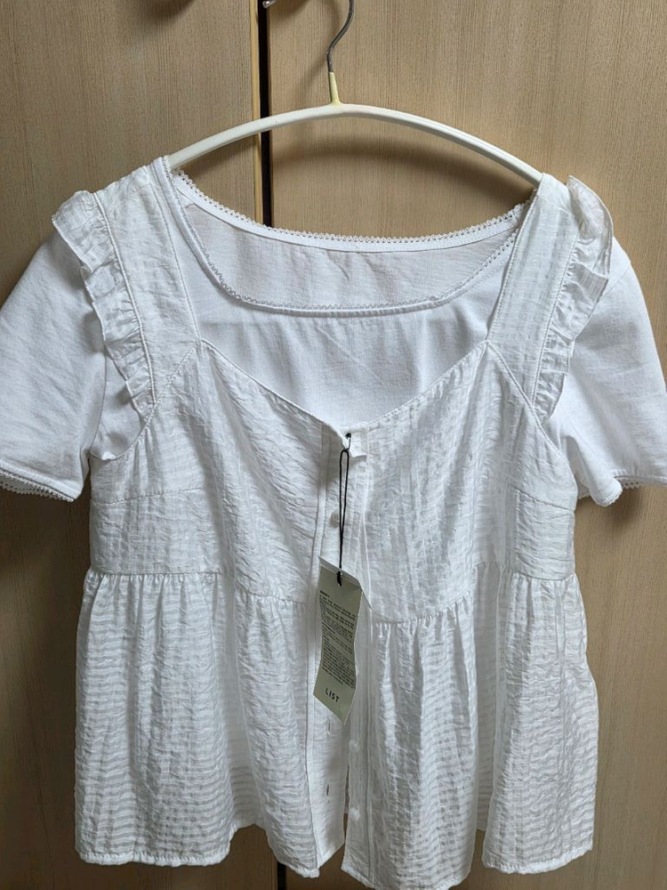 작년 여름에 구매한 LIST 브랜드 화이트 프릴 스퀘어넥 뷔스티에입니다. 사고 한번도 안입었어요 s 사이즈지만 xs 사이즈 느낌이에요 팔부분이 살짝 타이트합니다!! 여름에 입기 좋아요~~ * 티셔츠는 포함 x * 반품 불가