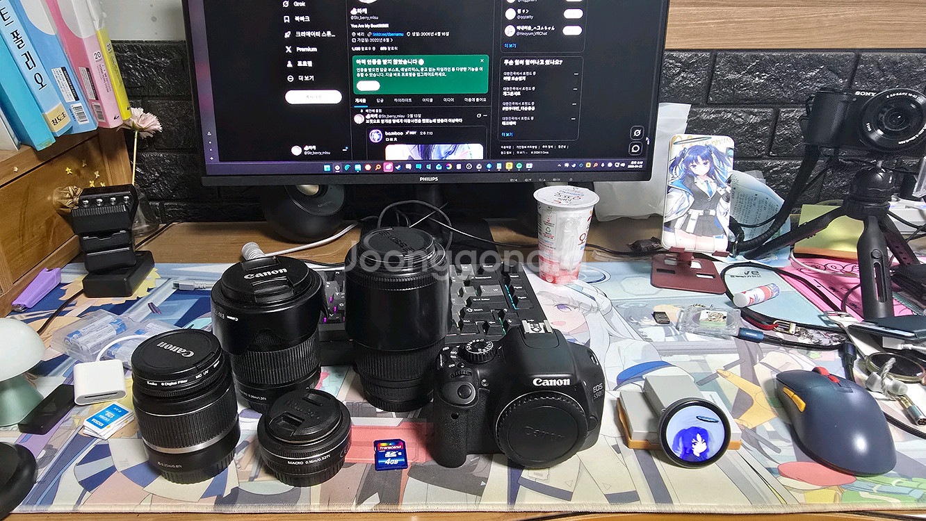 2차 구매 / 작년 10월에 구매했습니다. 컷수 5천컷쯤 됩니다. 구성품은 바디 탐론 70-300 (가방O) 캐논 18-135 캐논 24mm 캐논 18-55(번들) 카메라 가방 정품 + 사제 배터리 정품 + 사제 충전기 SDHC 카드 4gb 입니다. 가격은 50만원이며 직거래 or 쿨거시 네고 약간 가능합니다. 직거래 경산/대구인 경우대구대학교 / 경산, 동대구, 대구역에서 가능합니다. 청도인 경우 바르게살기 공원 옆 맘스터치에서 가능합니다.