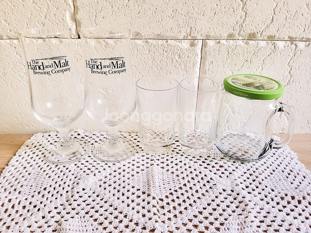 개인정보(거래정보)를 주고받는 행위는 사기에 노출될 수 있으므로 즉시 중고나라로 신고해 주세요유리컵 5종 세트 내놓아요~ - 맥주잔 2개 (The Hand and Malt Brewing Company) - 일반 유리컵 2개 - 뚜껑 있는 밀폐 유리컵 1개 ☆ 교환, 환불 불가하니 신중한 구매 바랍니다.