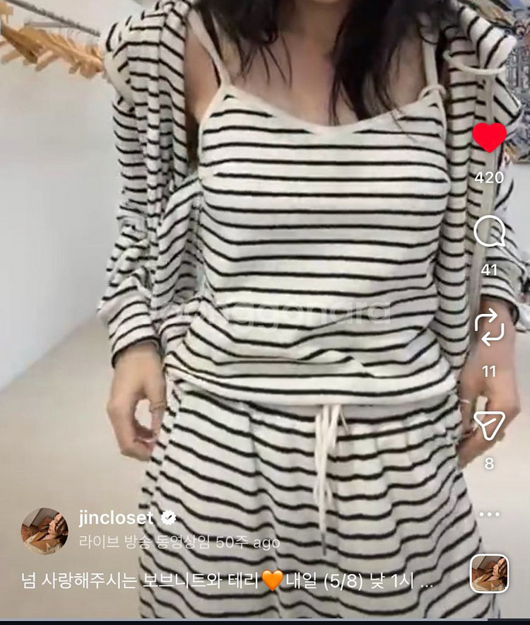 테리 아이스트라이프 쓰리셋업 세트로만 판매해요~ 기본원단보다 좀더 톡톡하고 단단하고, 더 비싼원단이라고 하셨어요~ 공정도 힘들어서 가격차이가 많이나서 더많이 비싸게주고 샀어요~ 스트라이프는 다신 못해주실꺼라고 하셔서 두세트씩 쟁여놓았다가 판매해요~ 이번에 리바이벌해주시는데 스트라이프는 워낙비싸서 안해주시더라구요~ㅠ 시착도안해본 새상품입니다~ 메세지주세요🙂