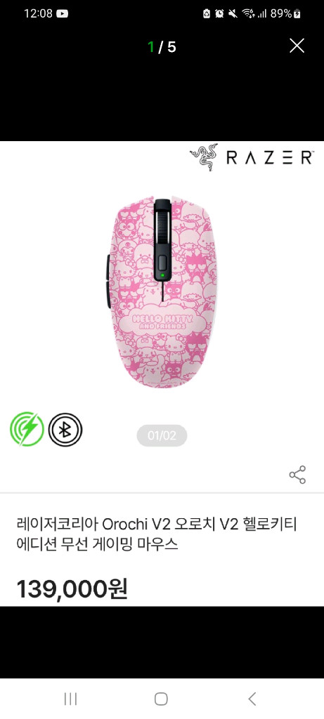 개인정보(거래정보)를 주고받는 행위는 사기에 노출될 수 있으므로 즉시 중고나라로 신고해 주세요레이저 정품 Orochi V2 오로치 V2 헬로키티 에디션 무선 게이밍 마우스 (지슈라1 동급 성능). 몇 번 사용함. 기스 없고 거의 새 거입니다. 배송비 포함 6.5에 팔아요.