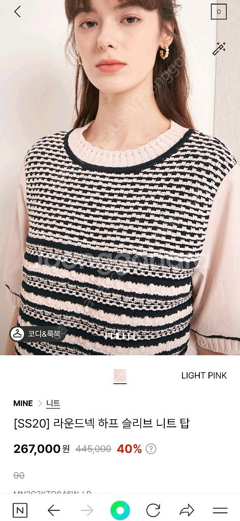 한섬 마인 팸셀 QC제굼 라운드넥 하프슬리브 니트 탑이에요. 핑크와 네이비 컬러 조합이 세련되고 착용감도 좋습니다. 깔끔한 새상태로 판매해요! 구입 후 반품 불가
