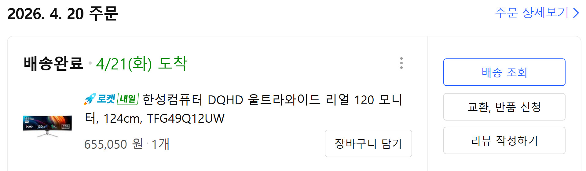 ![[단순개봉 새상품]한성컴퓨터 32:9 비율 49인치 DQHD 울트라와이드 모니터 팝니다. 이미지](https://img2.joongna.com/media/original/2026/04/23/1776915193715dbo_6gIWR.png?impolicy=resize)