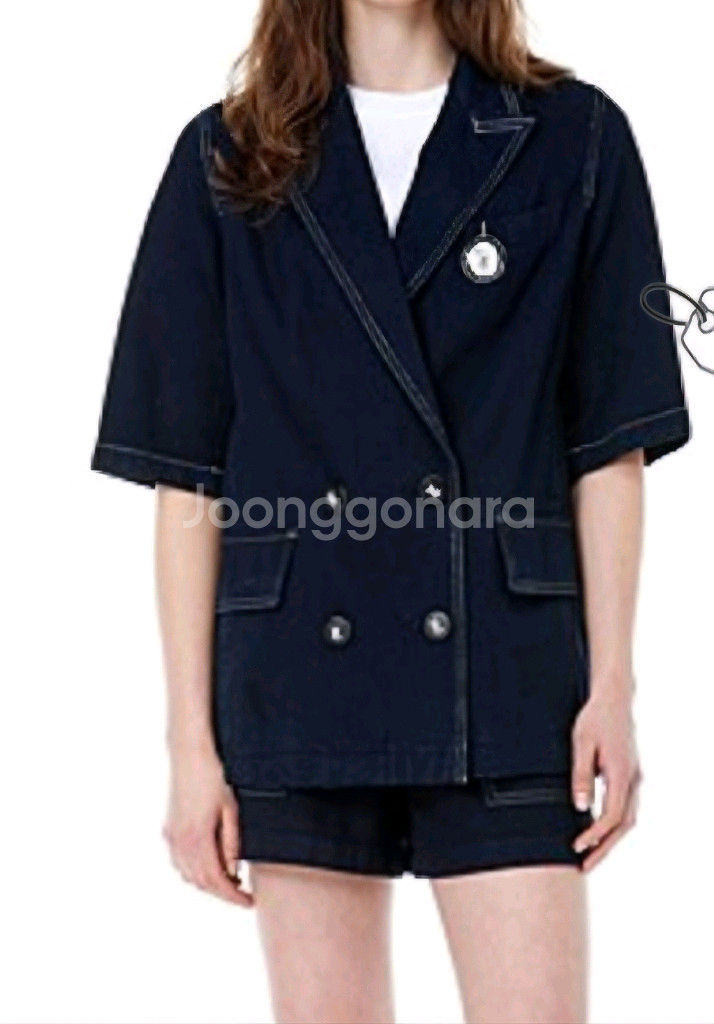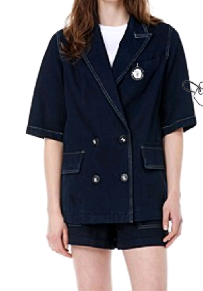 19년도 상품 정가 429000원 진한 네이비 데님 면100% 소재로 화이트 스티치라인에 더블 로고 버튼의 오버핏 데님 자켓입니다~ 고급스럽고 세련된 스타일입니다 브로치 포인트로 있고 뒷트임 있는 스타일입니다 소매.밑단 끝 자연스런 입음감 외 상태좋아요~ 사이즈ㅡ55 가슴반품ㅡ49 총길이ㅡ70 🍀배송료 별도3500원🍀 편의점 반값택배 2000원 중고특성상 교환이나 환불은 불가입니다