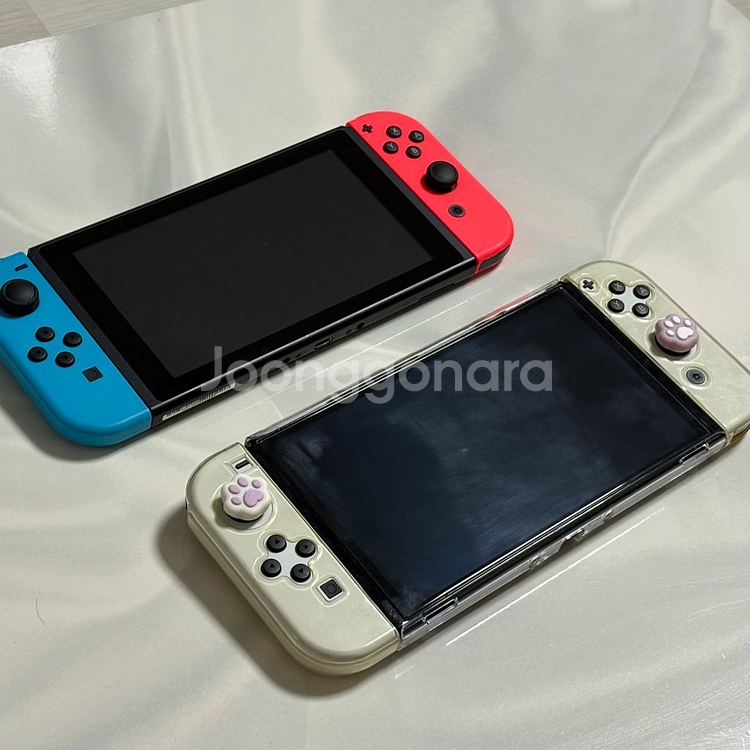 네온 - 배터리개선판, 케이스 및 액정 필름없으나 깨끗하게 사용함, 생활기스 있을 수 있음. OLED 화이트 - 본체 플라스틱 케이스, 조이콘 젤리 케이스, 액정필름 부착 후 사용하였느나 젤리 케이스 황변이 있어 제거 후 교체 추천합니다. 생활기스 있을 수 있음. * 추가 가능한 칩(전부 케이스 포함) 링피트 올인원 세트 +3.5 피트니스 복싱 2 +2.5 젤다의 전설 꿈꾸는 섬 + 3.5 둘 다 풀박스로 박스 및 다른 용품 존재하나 현재 외부에 있어 촬영하지 못했습니다. 차후 추가 구성까지 사진 추가하도록 하겠습니다. 즐겁게 사용하였으나 스위치 2로 기변할 생각이라 판매합니다. 서울 5호선 까치산역에서 직거래 가능하며 게임 두대와 추가금(15만원)으로 스위치 2와 교환도 생각하고 있습니다. 에눌 문의는 정중히 사양합니다.