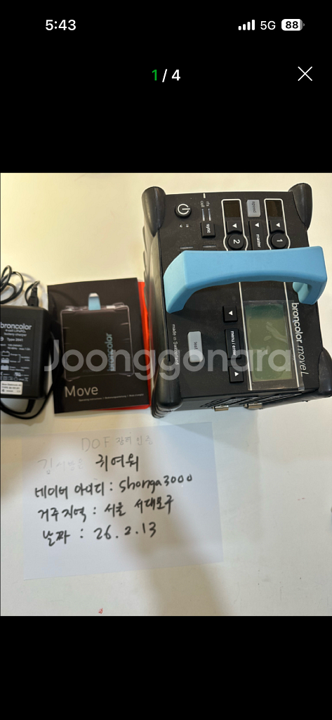 브론컬러 무브 1200L 5회이하 사용으로 상태 최상에 풀 구성품입니다. 2023년 세기에서 구매했습니다. 키트가 아닌 파워팩 거의 새제품으로 추가 램프 및 구성품 따로 구매하셔야 합니다! 현재 판매가 900-1000정도 합니다. https://withusmedia.co.kr/product/broncolor-move-1200-l-3101600/1351/?srsltid=AfmBOopgIr2zB74gENynlylC7b2jqtv3HPKkb_gjQrpqOlXUU1ZlfWD8 감사합니다.