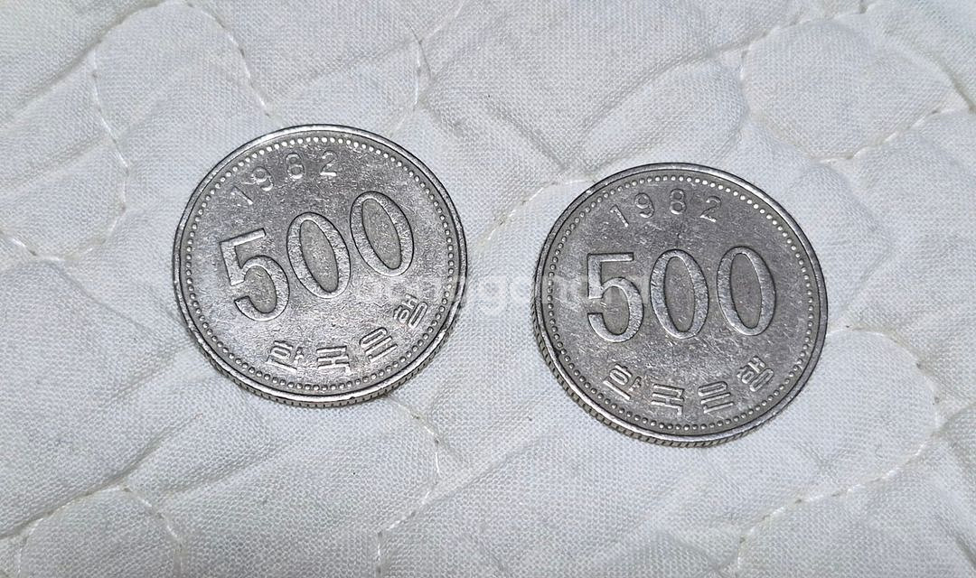 개인정보(거래정보)를 주고받는 행위는 사기에 노출될 수 있으므로 즉시 중고나라로 신고해 주세요1982년 발행된 500원 동전 2개입니다. 사용감은 있지만 상태 양호하고 컬렉션용으로 좋을 것 같아요.