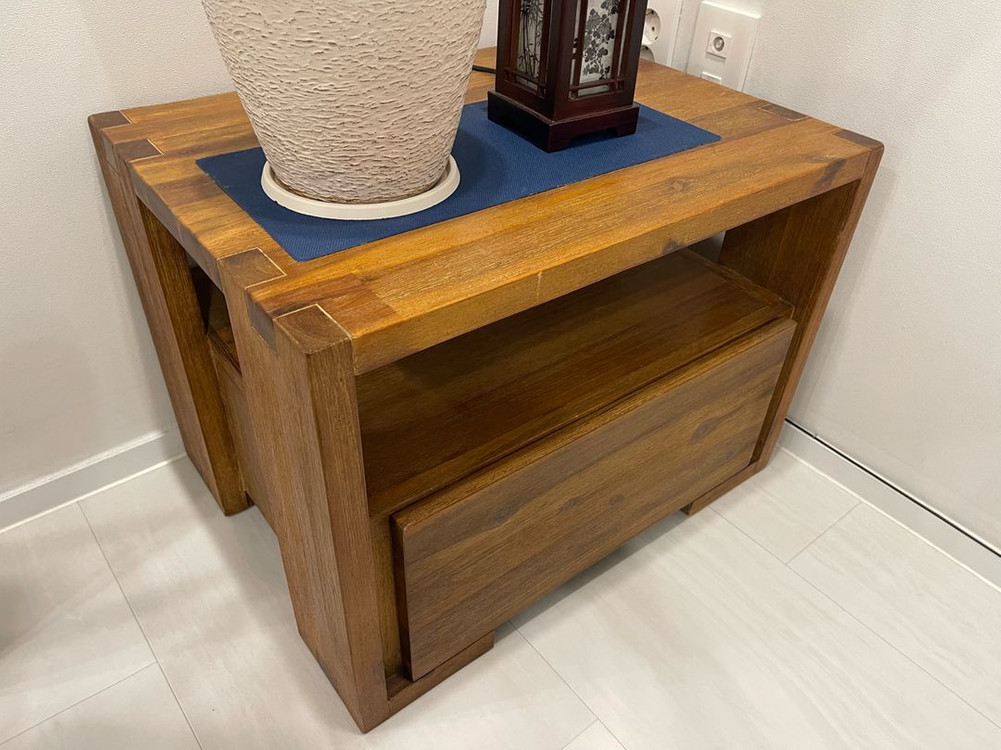 고트레 브랜드 아카시아 원목 협탁 서랍장입니다 서랍이 있어 수납이 용이하고 침대 옆이나 거실에 두기 좋은 사이즈예요 약간의 사용감은 있지만 전체적으로 양호합니다 아끼는 가구인데 이사를 하게되어 판매합니다 **판매되지 않을 경우 친척집에 나눔할 예정입니다 편하게 문의 주세요 넓이 60 x 폭 45 x 높이 43 cm