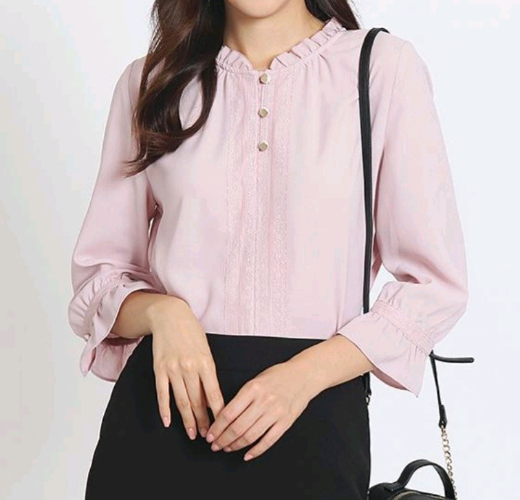 브랜드 로엠 쉬폰 프릴블라우스66 가슴둘레 105 기장 66 사이즈는 재는 위치에 따라 오차 있을수있어요 7~8부정도?의 소매 목부분과 소매부분의 프릴과 소매부분.앞라인부분에 레이스로 덧대어져 여성스럽고 이뻐요 비침없음. 폴리에스테르소재라 구김 잘 안생겨요 자연스러운 사용감 있어요 반품 및 환불은 힘드니 신중하게 구매부탁드립니다