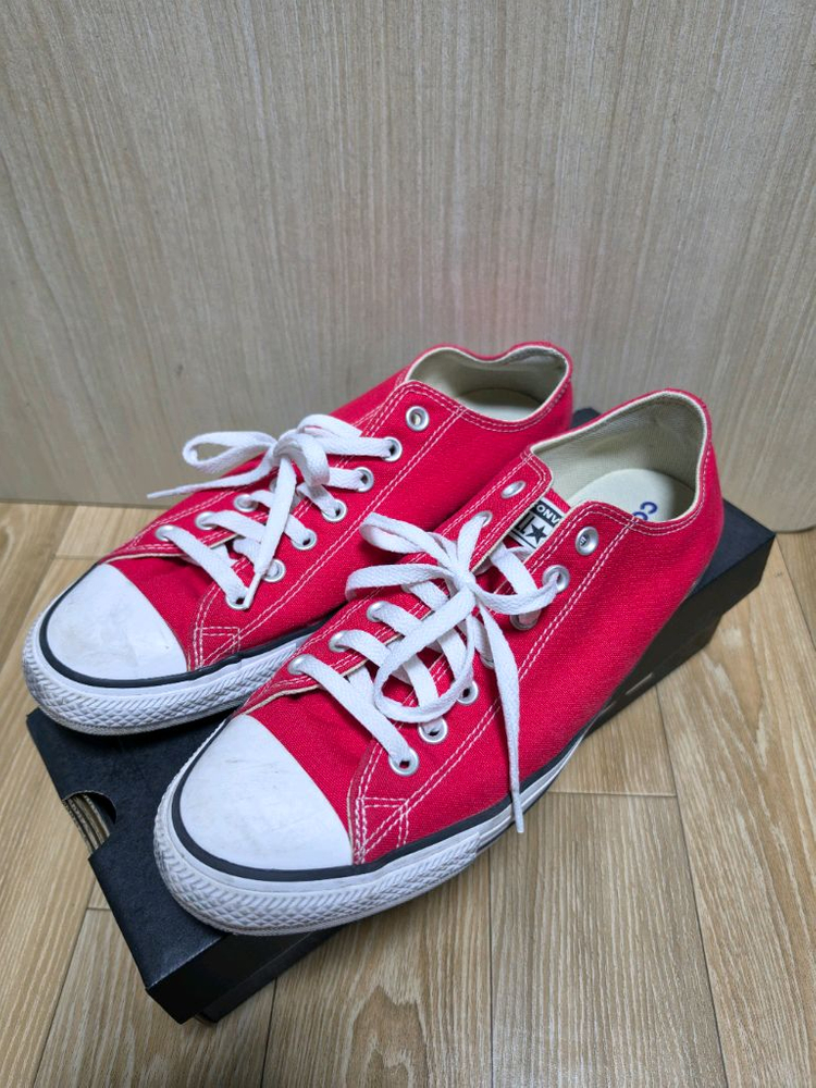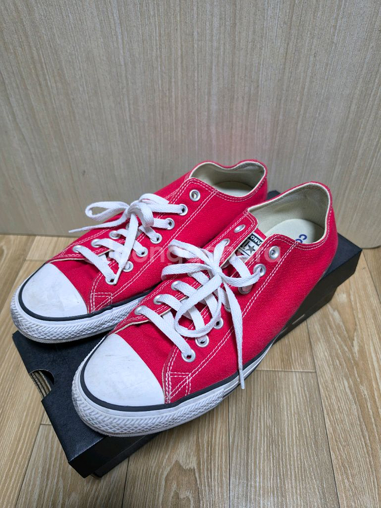 개인정보(거래정보)를 주고받는 행위는 사기에 노출될 수 있으므로 즉시 중고나라로 신고해 주세요컨버스 올스타 로우 레드입니다. 박스와 함께 구성되어 있으며, 전체적으로 깔끔한 편입니다. 데일리로 신기 좋은 깔끔한 스니커즈이며, 청바지와 신었을 때 제일 어울리는 제품 같습니다.
