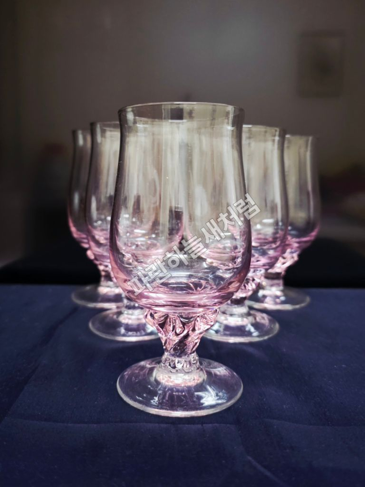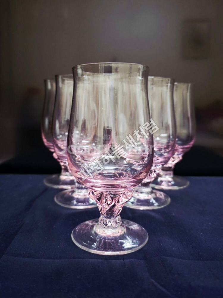 어여쁜 아가씨 같은 와인잔입니다. 당시에는 서양에서 매우 유명한 트위스터 잔이었답니다. 모두5ps. 요 잔은 높이 12cm인데 그 후 70년대 부터 나온 제품들은 좀 더 큽니다.ㅡ 그린빛, 푸른빛,은 가끔씩 Online에서 볼 수 있지만 핑크는 보기 어렵습니다. 반품 환불 불가합니다 빈티지유리잔! 짝수이상판매! ※일괄구매혜택※