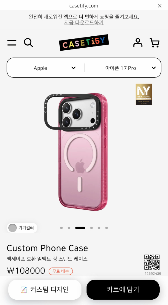 보호 필름도 뜯지 않은 아이폰 17 프로용 맥세이프 케이스 핑크 컬러가 예쁘고 맥세이프 지원으로 편리하게 사용할 수 있어요. 완전 새 제품 상태로 깔끔합니다. 정가 108,000 판매가 80,000 구입월 4월