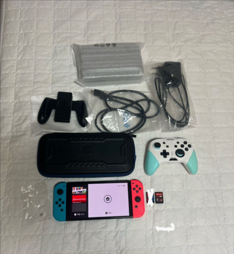 닌텐도스위치OLED 네온 스트랩 및 박스제외 풀구성 호환 컨트롤러+칩(nbk20)+보관파우치등 ⭕️24년제조⭕️ 전체적으로 생활기스 및 생활감 있습니다. 쏠림 및 오작동 일체없으며 왼쪽 조이콘 힘많이주면 걸쇠빠짐있습니다. 게임하는데에 있어서 크게 지장없습니다 수리안하고 그냥써도 무방하지만 예민하시면(메탈걸쇠증정)수리하시라고 증정합니다. 예민하신분은 패스해주세요 네고❌️❌️❌️ 택배거래만합니다. 택배거래시 4000추가 외부거래차단 중고나라 안전결제또는 ㄱㅈ거래만