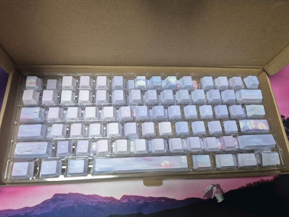 알리발 퍼플키캡이며 재질 :PBT / 이중사출 키캡수 : 130키 프로파일 : 체리 10분정도 사용했습니다 정각 각인 글씨에 측각 LED투과되어 이쁩니다. 사용은거의 안했습니다. 특이점으로 각인중에 ㅊ위치가 ㅈ로 각인되어 있습니다. (ㅈ이 2개) 상관업으신분이 구매하시면좋을거같습니다 택배비포함 판매합니다