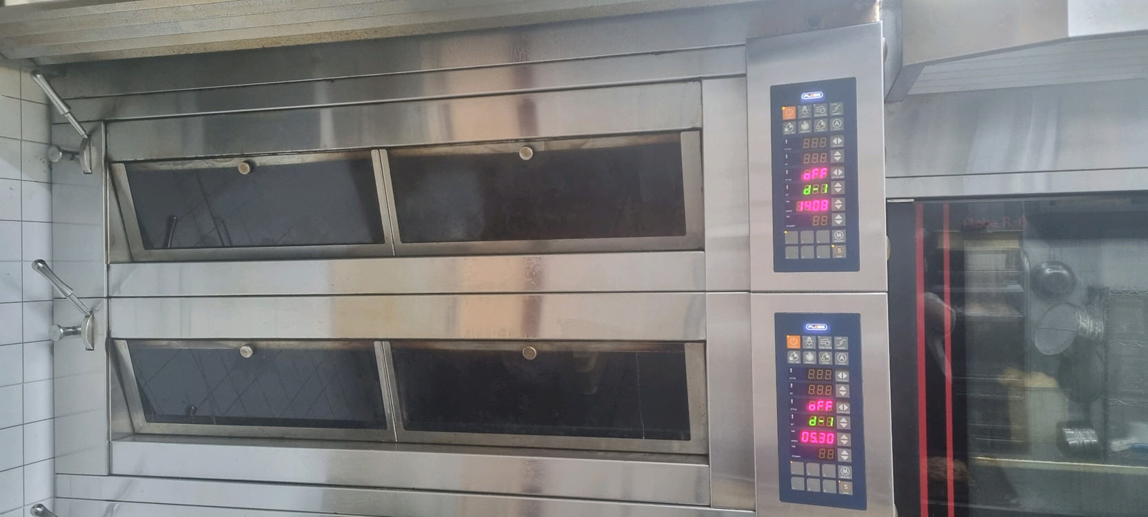 업소용 데크오븐으로 4매2단 구조입니다. 스테인리스 소재로 견고하고 디지털 온도 조절 기능이 있어요. 업소나 베이커리 운영에 적합한 제품입니다. 업소용 컨벡션 오븐으로 디지털 온도 조절 기능이 있어요. 스테인리스 스틸 재질로 견고하고 전문 베이커리나 카페 운영에 적합합니다. 사용감은 있지만 작동 상태 양호해요. RJEO-402 2단입니다 23년 제조제품이고 매장에서 잘 사용중입니다. 5월11일에 직접 해체해서 가져가실수있는분만 연락주세요 노쇼방지 예약금 10% 받습니다